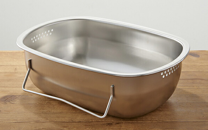 ●ゴム脚などを使っていないオールステンレス仕様だからぬめりにくく清潔。食器の漬け置きや野菜洗いに便利です。